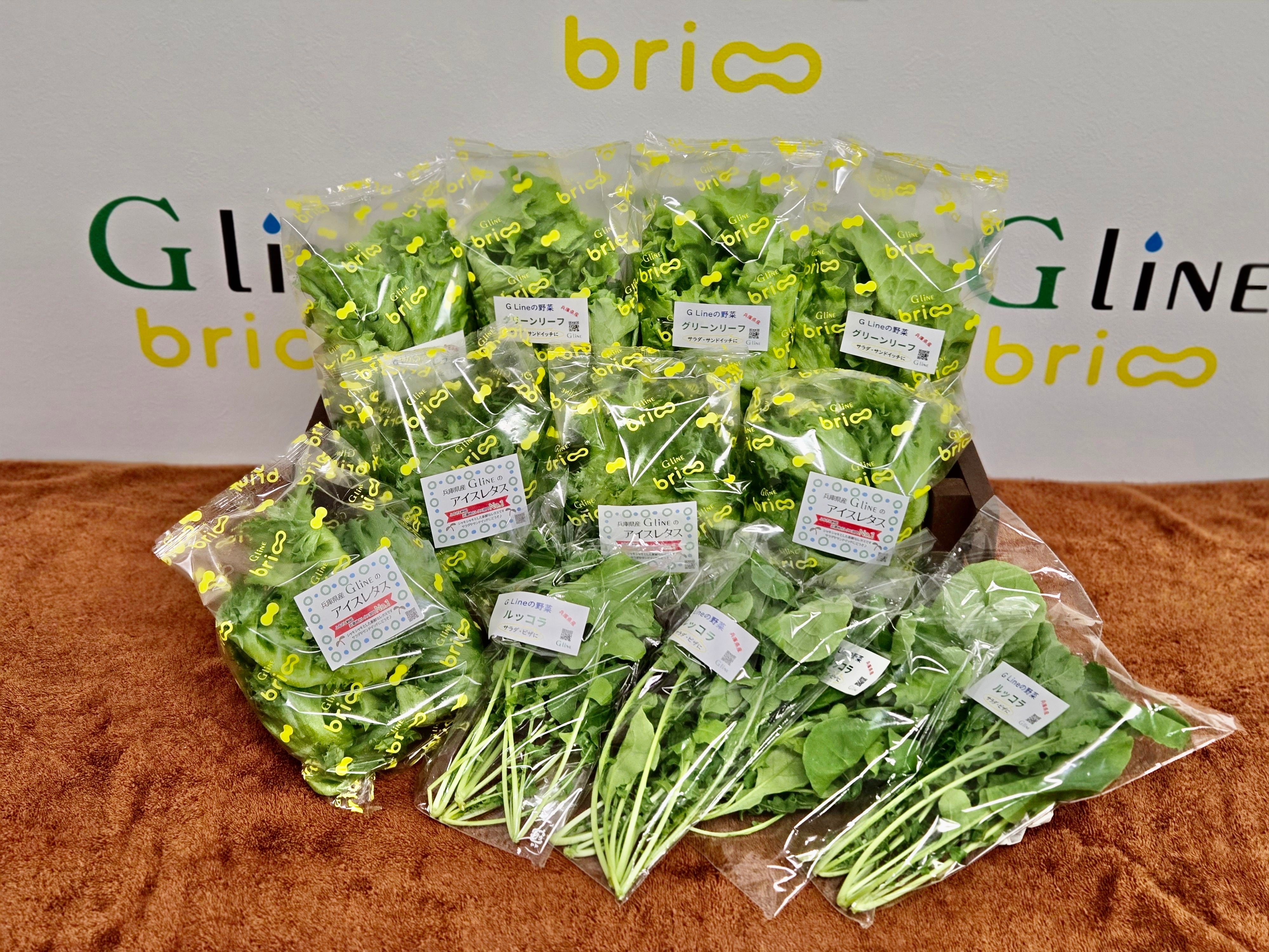 清潔なG Line植物工場で、農薬を使わずに育てた水耕野菜「G Line brio」のセット。