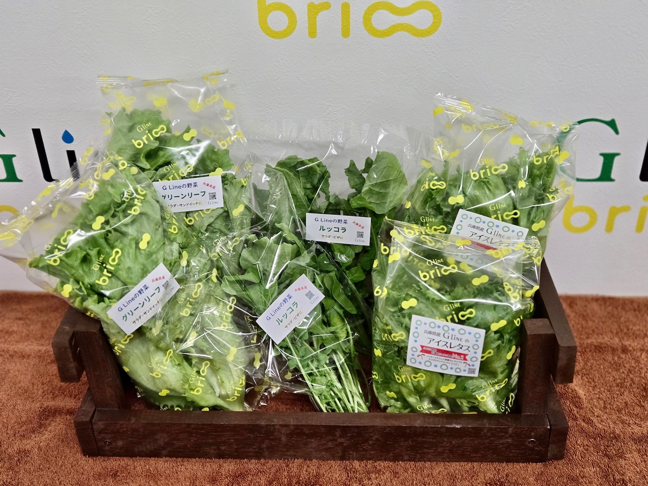 清潔なG Line植物工場で、農薬を使わずに育てた水耕野菜「G Line brio」のセット。
